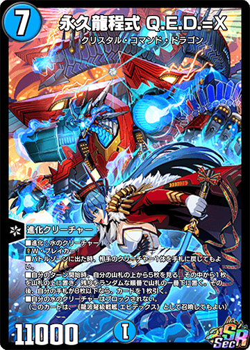 ※このカードは、《永久龍程式 Q.E.D.=X》《龍波弩級戦艦 エビデックス》のいずれかで召喚可能です。