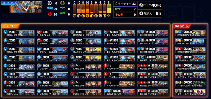 本日使用したデッキを構築する上で最も工夫した点 エグザイルクリーチャーの枚数と初動の枚数。