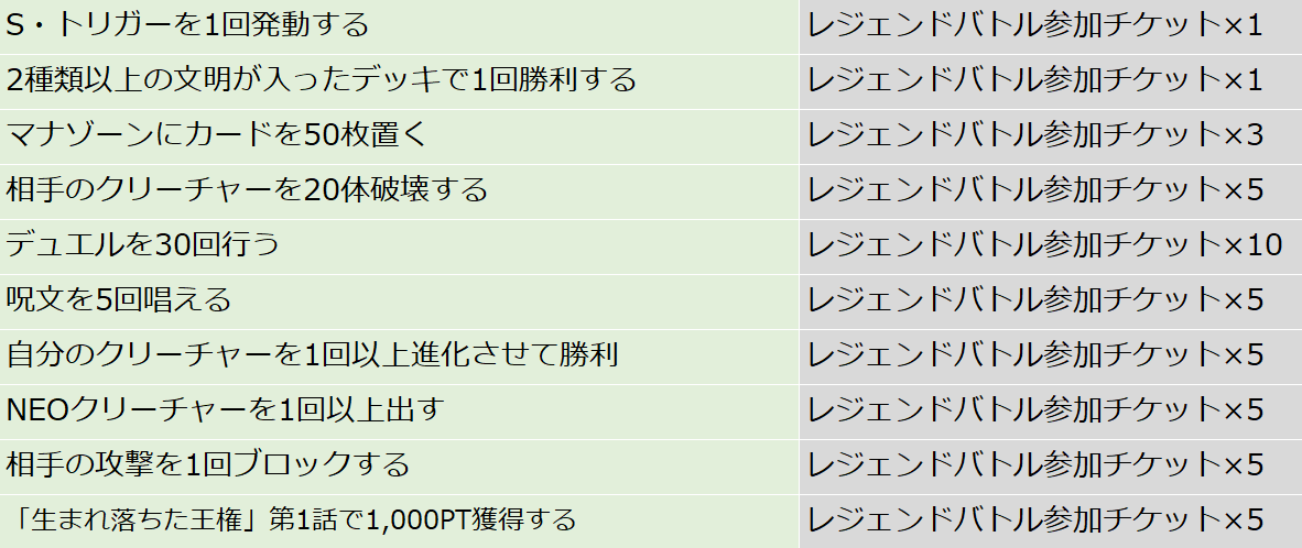 ミッションを達成して、レジェンドバトル参加チケットをGETしましょう!