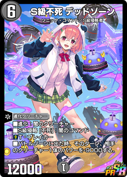 コラボ用特別イラストの 《S級原始 サンマッド》(PR) / 《S級不死 デッドゾーン》(PR) / 《禁断の轟速 レッドゾーンX》(PR) / 《悪魔神バロム・クエイク》(PR) / 《龍聖霊マギア・デル・フィン》(PR) のいずれか1枚がランダムで獲得できます。
