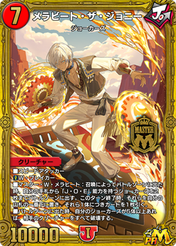コラボ用特別イラストの 《ジョリー・ザ・ジョニー》(PR) / 《メラビート・ザ・ジョニー》(PR) / 《大獄の封殺ディアス Z/破獄の殲滅者ディアボロス Z》(PR) / 《“罰怒”ブランド》(PR) / 《超無限神星アポロヌス・アガペリオス/双炎祭壇 アポロヌス・パトス》(PR) のいずれか1枚がランダムで獲得できます。