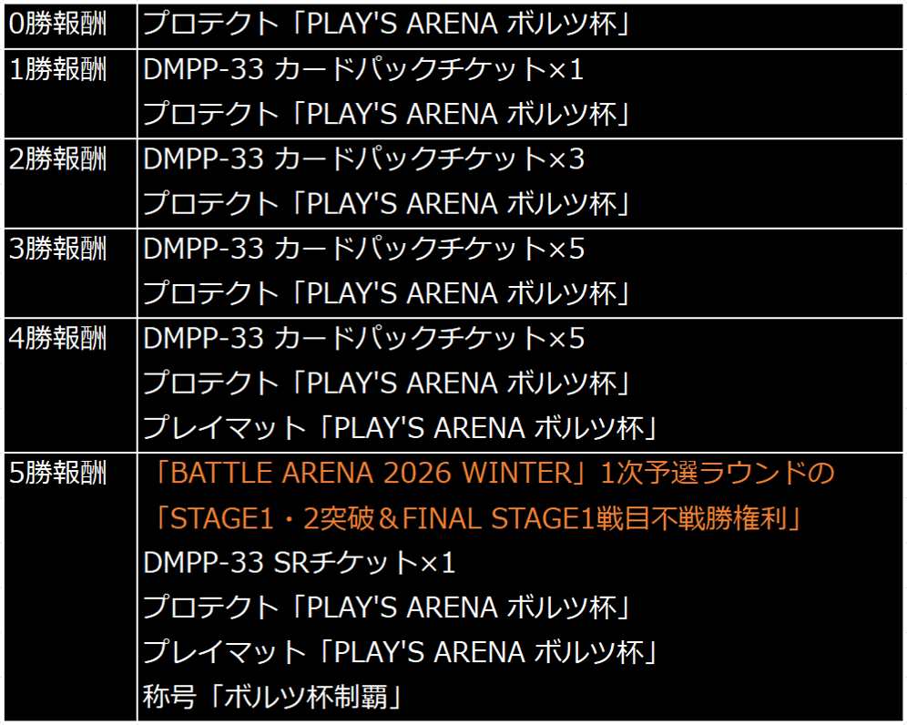 ※この権利は、公認大会などで獲得できる「BATTLE ARENA 2026 WINTER」1次予選ラウンドの「STAGE1・2突破&FINAL STAGE1戦目不戦勝権利(Bye権)」と重複します。