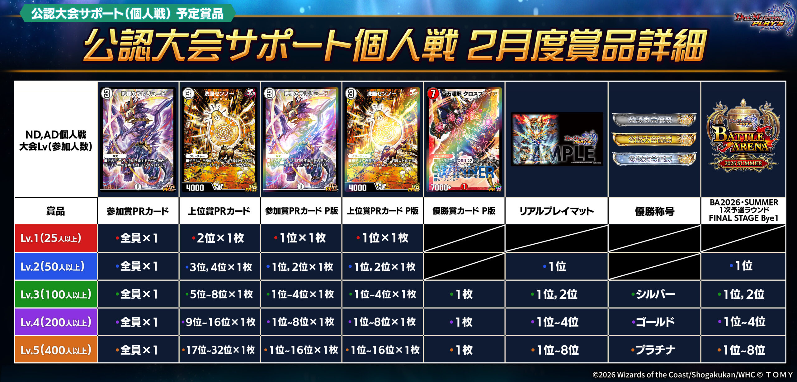 ※賞品を獲得された大会で1戦以上対戦されていない場合、賞品を発送・付与できない場合がございます。