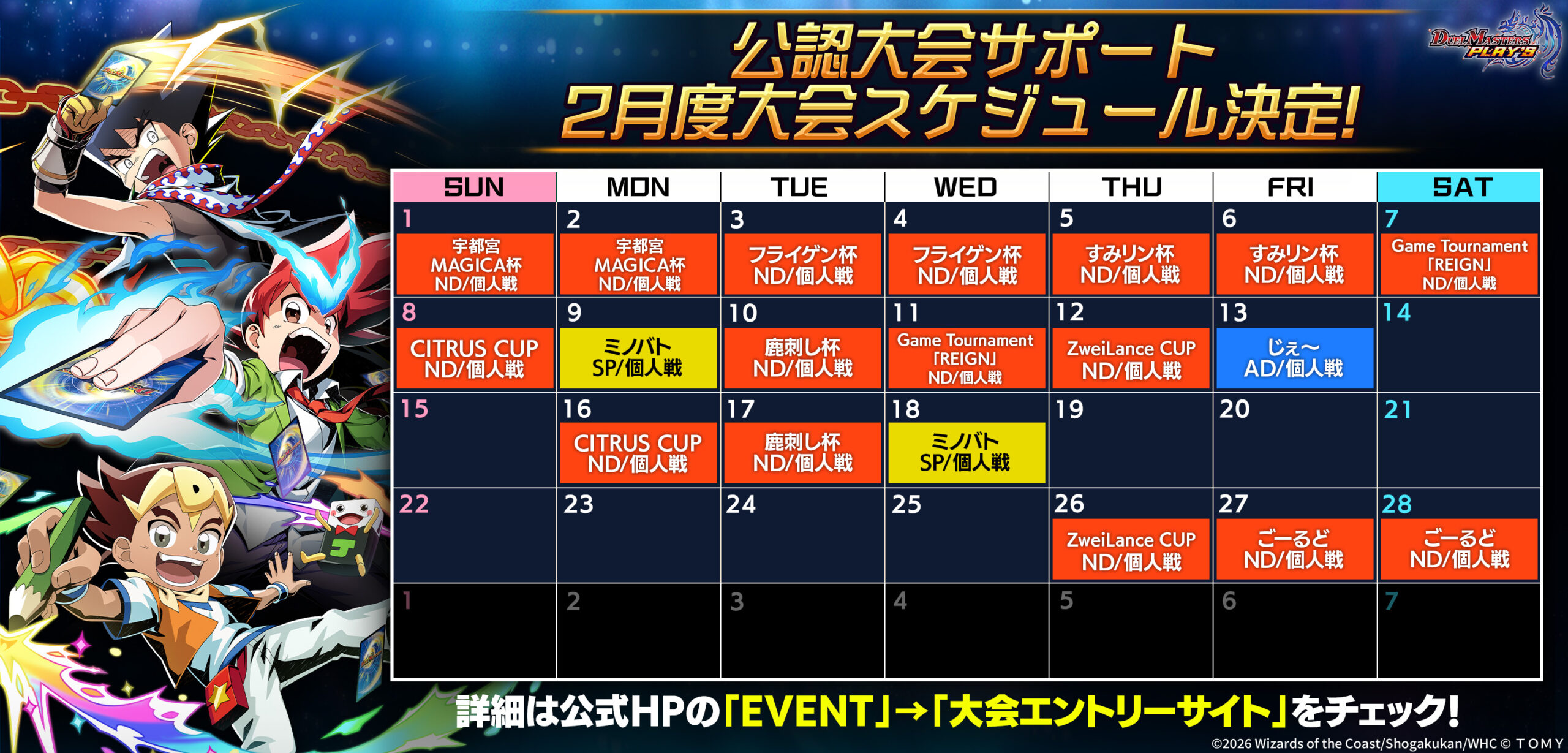 ※大会の内容やスケジュール、賞品の内容は予告なく変更になる場合がございます。予めご了承下さい。