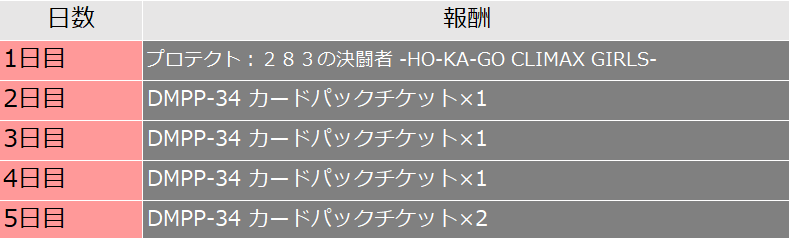 コラボイベント開催を記念して、特別ログインボーナスを実施します。ログインを行って、プロテクトやDMPP-34 カードパックチケットをゲットしよう!