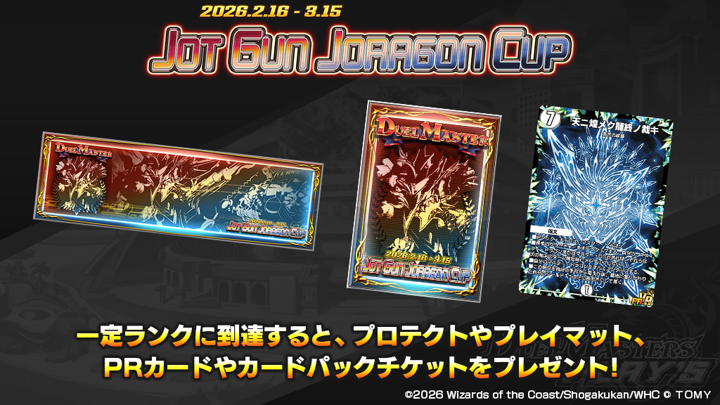 報酬の プライズ(PR)カードや「ジョット・ガン・ジョラゴンカップ」の限定プレイマット/プロテクトを手に入れよう!!