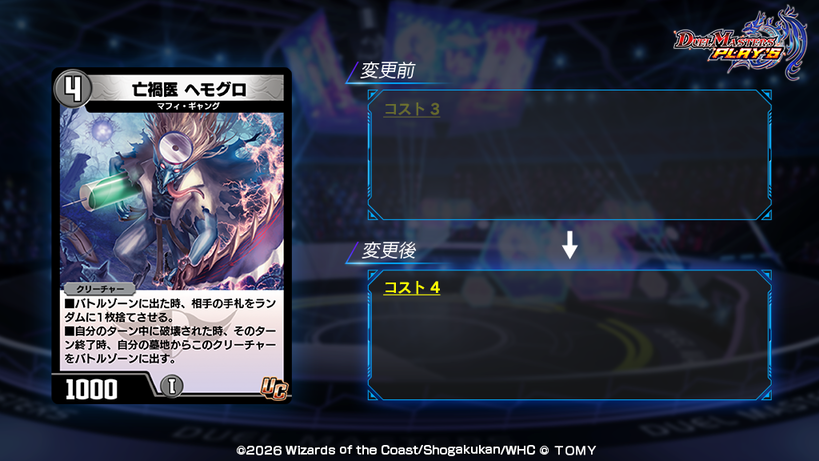 ※上記の対応に伴い、ショップの「カード交換」にて獲得した全ての《亡禍医 ヘモグロ》(PR)を回収させていただきますので、あらかじめご了承ください。