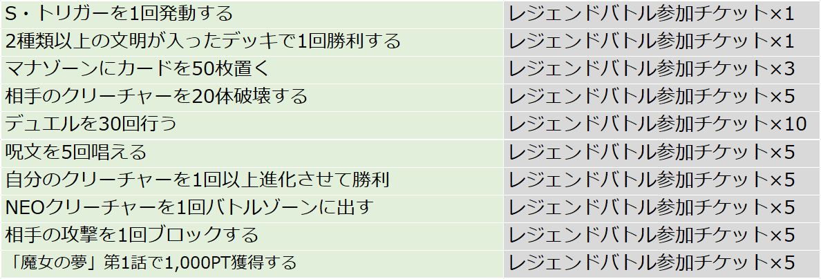 デュエルを行うことでレジェンドポイントが入手でき、集めたポイントに応じて様々な報酬が獲得できます。ポイントを集めて特別イラストの 《イチゴッチ・タンク/レッツ・ゴイチゴ》(PR) や DMPP-35 SRチケット が入手可能!
