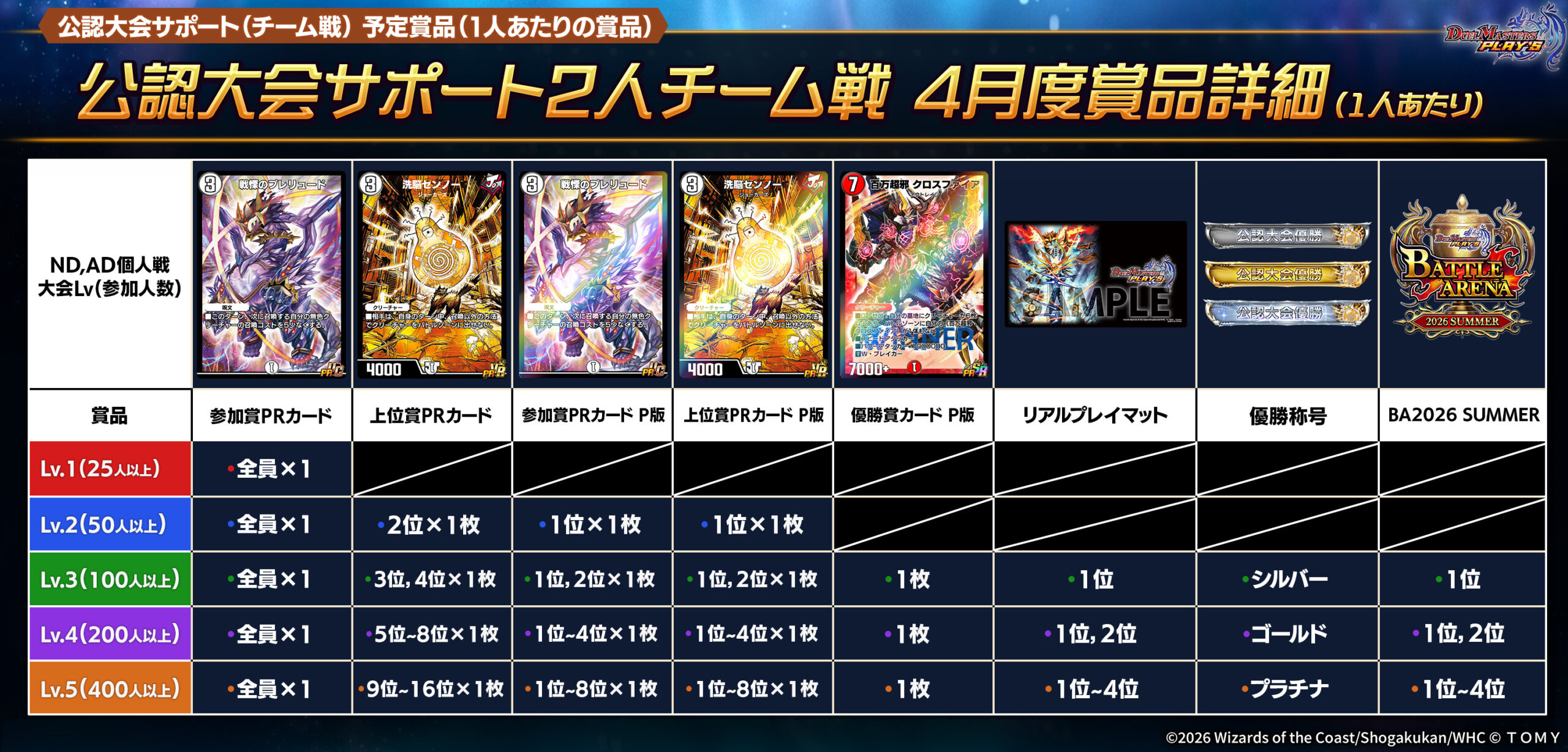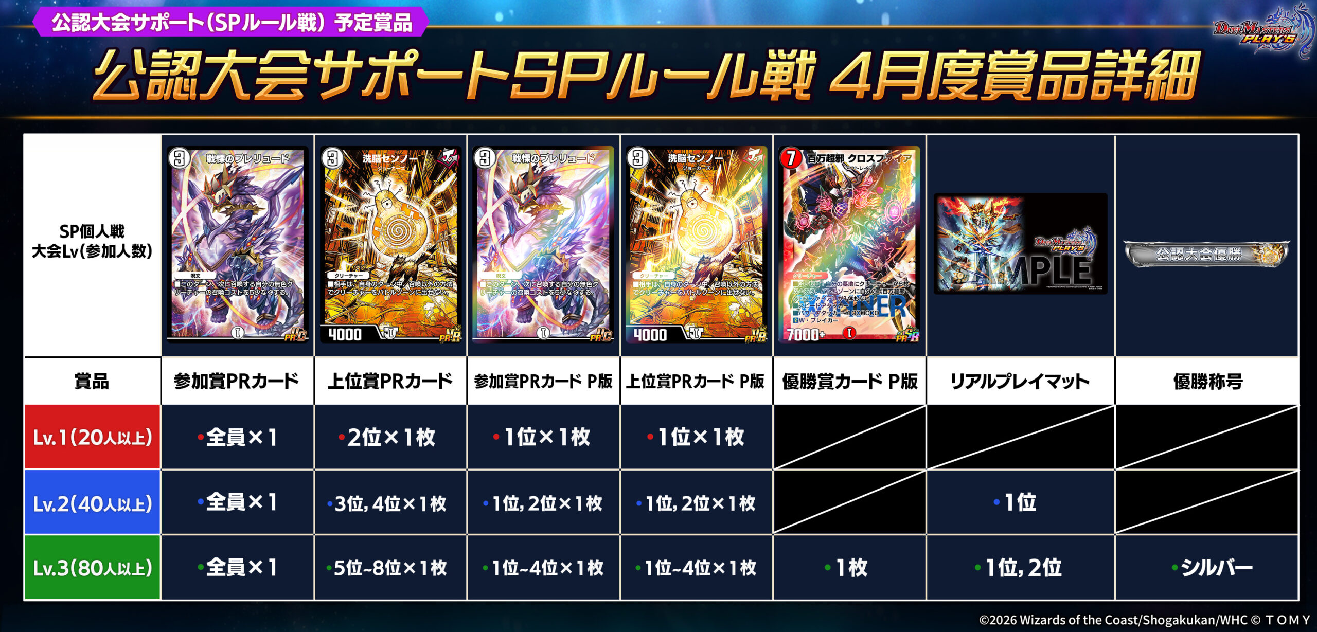 大会のレベル(結果参加人数)に応じて賞品ゲット!ゲーム内特別PRカード 《百万超邪 クロスファイア》 や 《洗脳センノー》 、 ラバープレイマット を手に入れよう!!