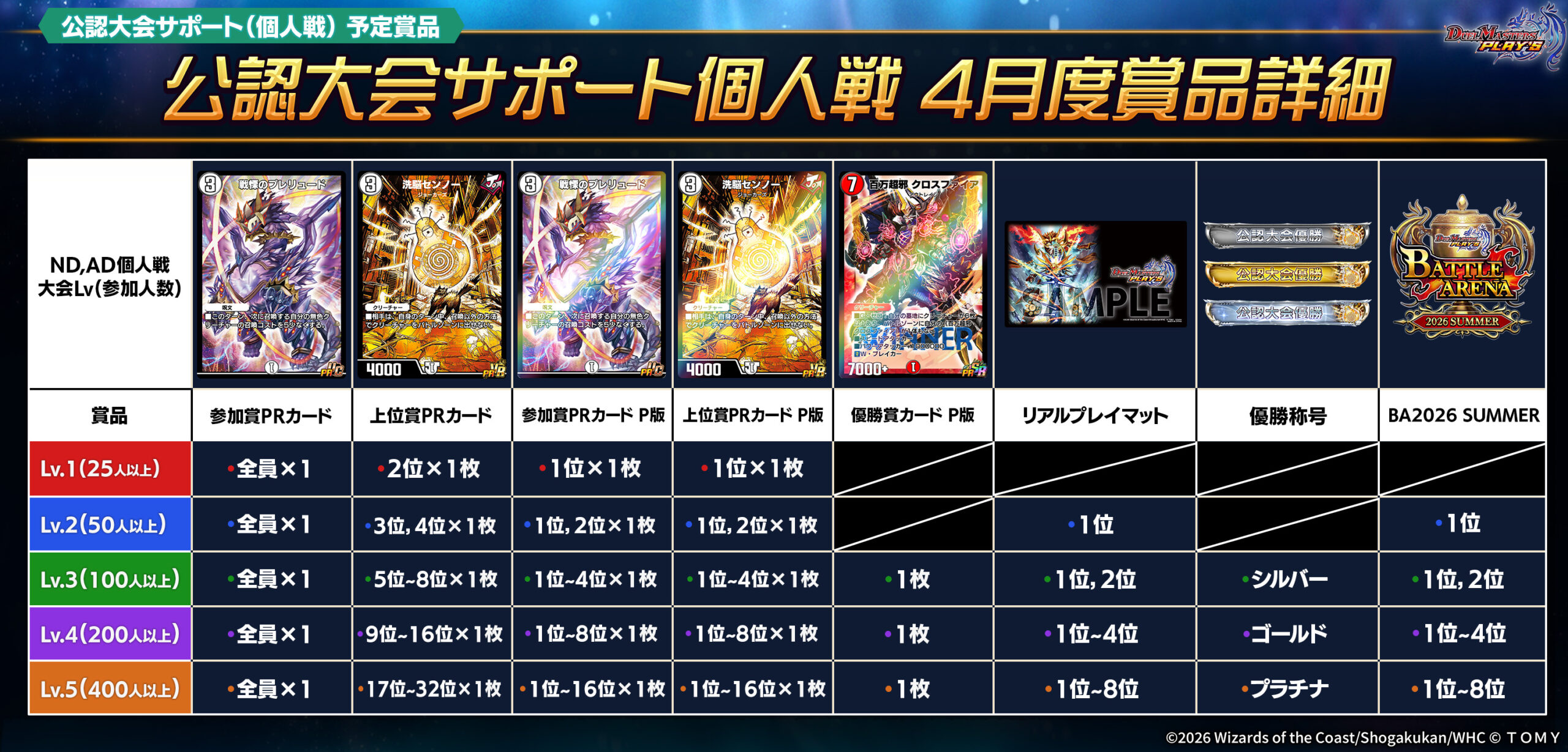 ※賞品を獲得された大会で1戦以上対戦されていない場合、賞品を発送・付与できない場合がございます。