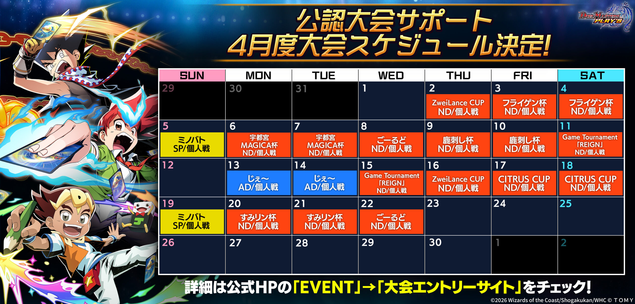 ※大会の内容やスケジュール、賞品の内容は予告なく変更になる場合がございます。予めご了承下さい。