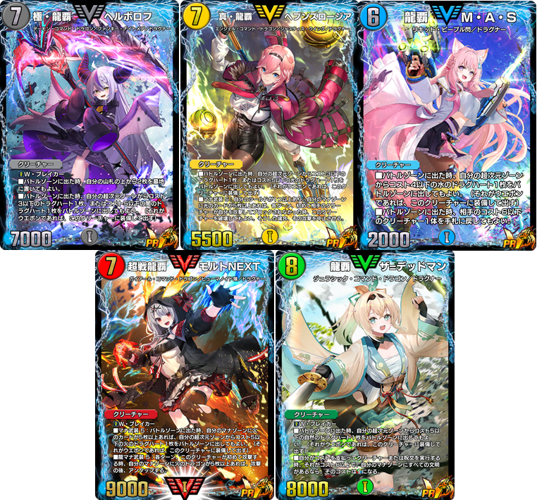 コラボ用特別イラストの 《極・龍覇 ヘルボロフ》(PR) 、 《真・龍覇 ヘブンズロージア》(PR) 、 《龍覇 M・A・S》(PR) 、 《超戦龍覇 モルトNEXT》(PR) 、 《龍覇 ザ=デッドマン》(PR) のいずれか1枚がランダムで獲得できます。
