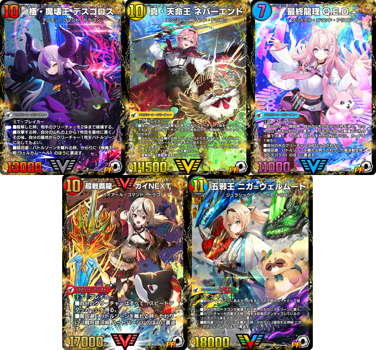 コラボ用特別イラストの 《キングダム・オウ禍武斗/轟破天九十九語》(PR) 、 《煌龍 サッヴァーク》(PR) 、 《暴走龍 5000GT》(PR) のいずれか1枚がランダムで獲得できます。