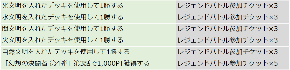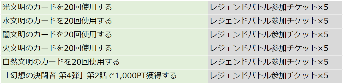 期間中にミッションを達成することで「レジェンドバトル参加チケット」を最大95枚獲得可能。